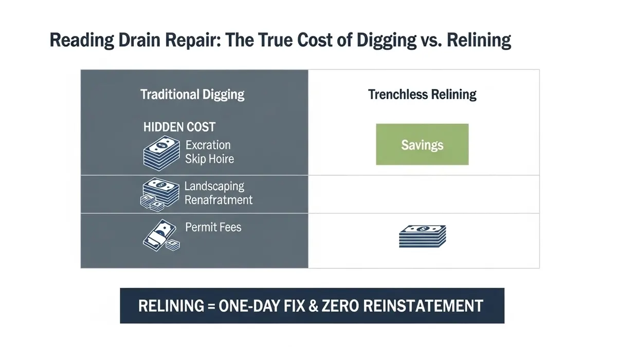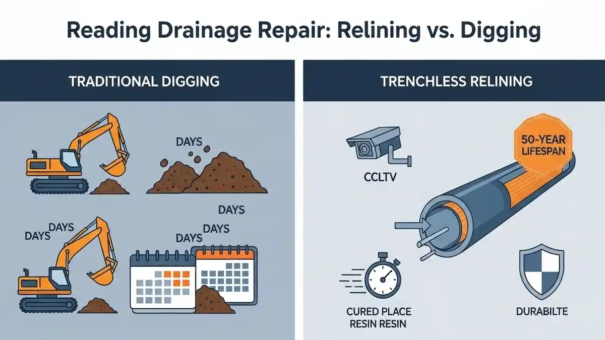 Avoid costly, messy excavations. Compare Watlington Drain Relining vs Digging to save your home, time, and money with our expert, minimally invasive, and durable no-dig repair solutions for local drains.